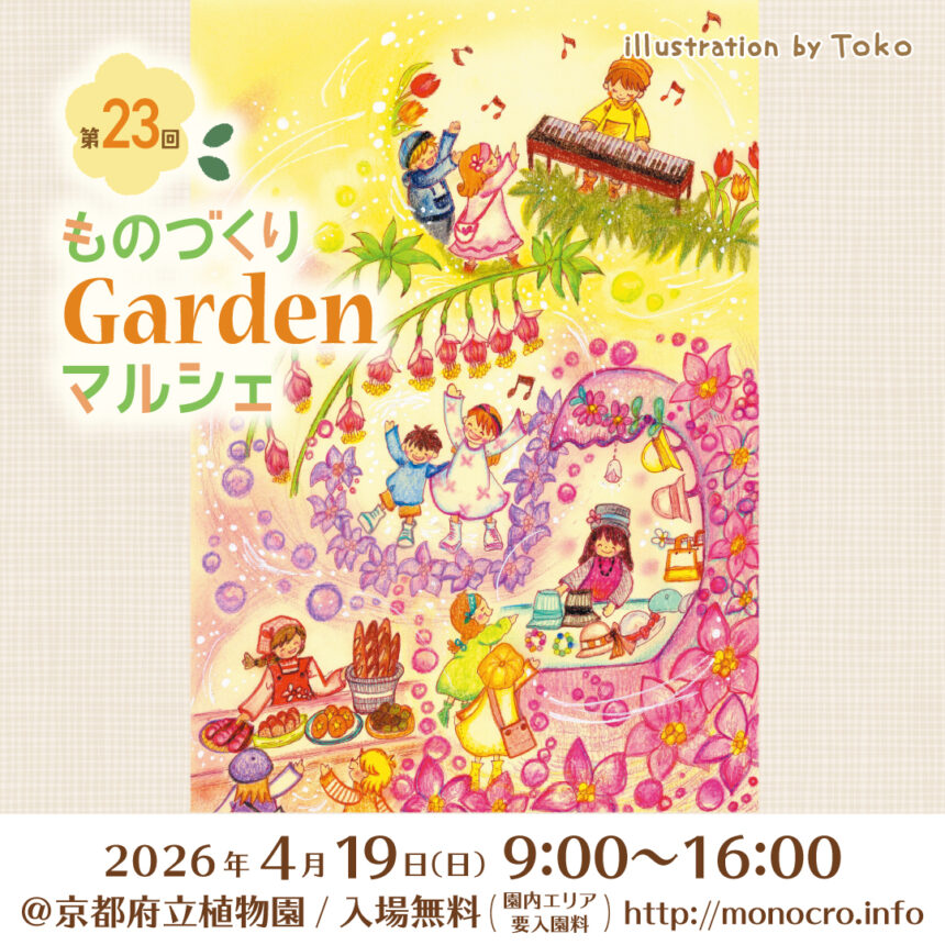 京都・下鴨にある日本最古の公立総合植物園「京都府立植物園」にて、「第23回 ものづくりGardenマルシェ」が2026年4月19日(日)に開催されます。2014年からスタートしたこのイベントは、さまざまな植物を鑑賞しながら、手づくりの温もりに触れることができる特別なマルシェです。