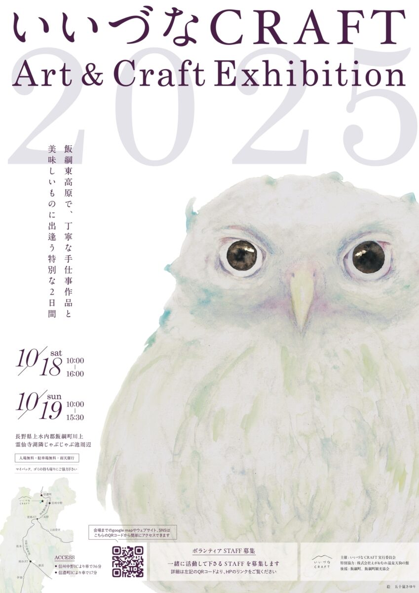 飯綱東高原の自然豊かな風景の中で、全国から集まるクラフト作家とこだわりの飲食店が織りなす「いいづなCRAFT2025 Art&Craft Exhibition」が、10月18日・19日に開催されます。芝生広場や小路、水辺の風景が残る空間で、手仕事作品を愛で、味わい、体験する特別な秋の時間。入場無料で、のんびりお散歩しながら気になる作品と出会えるイベントです。イベントの特徴と魅力