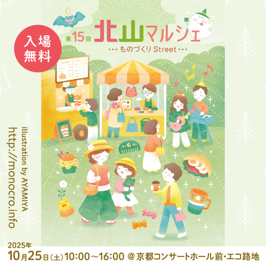 京都・北山エリアを舞台にした人気イベント「北山マルシェ~ものづくりStreet~」と「北山 music Street」が、2025年10月25日(土)に開催されます。会場は「京都コンサートホール前」と「エコ路地」。アクセサリーや布小物、陶器、木工、革小物、紙雑貨など、約70の手づくりブースが並び、できたてのスイーツやフードが楽しめるキッチンカーも5台登場します。音楽イベント「北山 music Street」では、アコースティックな音楽が会場を包み込み、心地よい時間を演出。当日は「北山あおいフェスティバル」や「北山グリーンハロウィン」なども同時開催され、北山の街全体がにぎわいに包まれますイベントの特徴と魅力