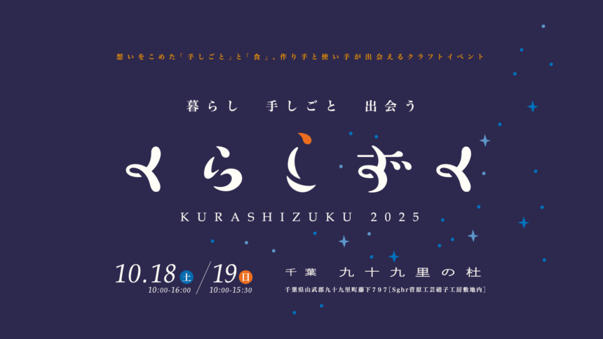 千葉・九十九里の杜にて、クラフトと暮らしをテーマにしたマーケット「くらしずく2025」が開催されます。ガラス工房を背景に、作り手と使い手がゆったりと語らえる空間。全国から選りすぐりのクラフト作家、ワークショップ、マルシェ&飲食ブースなどが集まり、ものづくりに触れる“体験型のマーケット”としても見逃せません。自然あふれるロケーションで、週末の心豊かな時間を過ごしませんか。イベントの特徴と魅力