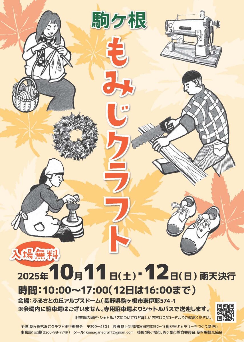 「第16回 駒ヶ根もみじクラフト」は、クラフト作品に込められた作り手の思いと、雄大な自然に包まれた駒ヶ根の魅力を同時に感じられるイベントです。お気に入りの作品に出会う時間はもちろん、地元の食や人々との交流も楽しみのひとつ。ぜひ秋の週末に足を運び、心温まるクラフトの世界を体験してください。